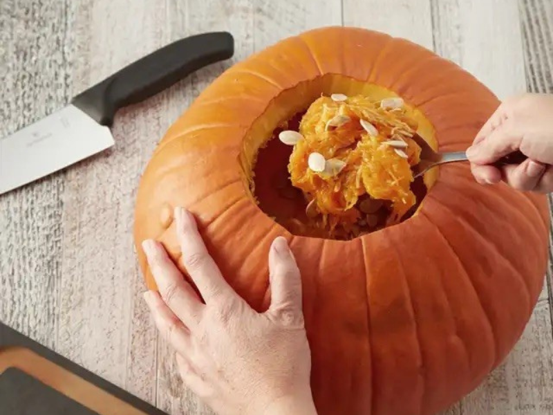 Wähle den richtigen Kürbis: Stelle sicher, dass dein Kürbis sauber und frei von Schmutz ist. Achte auch auf eine glatte, feste Oberfläche und sicheren Stand.