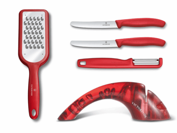 Freu dich auf eine durchdachte Kombination aus Schneiden, Schälen, Reiben und Schärfen – alles in einem Set vereint. Damit sparst du Zeit, arbeitest effizienter und hast immer das richtige Werkzeug griffbereit. Das Küchenhelfer-Geschenkset rot überzeugt nicht nur durch seine Funktionalität, sondern auch durch sein modernes, frisches Design. Die kräftige rote Farbe macht das Set zu einem echten Hingucker – egal ob in deiner Küche oder als Geschenk.