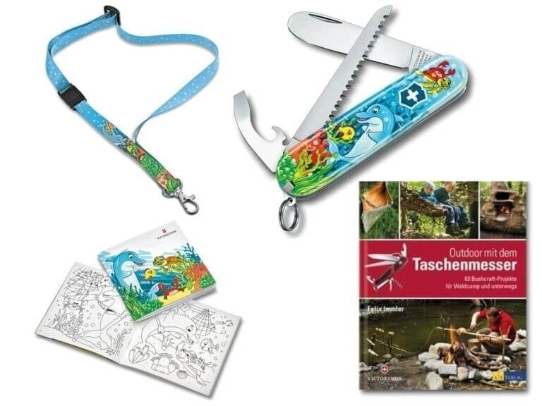 Dieses Set beinhaltet: 1 x My First Victorinox Taschenmesser - Tieredition 1 x Großes Schnitzbuch "Outdoor mit dem Taschenmesser" (Art.Nr. 9.5204.2)