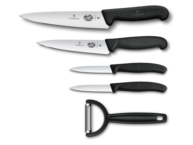 Mit diesem praktischen Küchenmesser Set 5-teilig bist du bestens für alle täglichen Aufgaben in der Küche gewappnet. Das Set enthält ein Office- und ein Tranchiermesser aus der beliebten Fibrox-Serie, die perfekt für das Schneiden von Fleisch und Bratenstücken geeignet sind. Beide Messer liefern stets einen sauberen, glatten Schnitt – ohne dass etwas zerfasert.