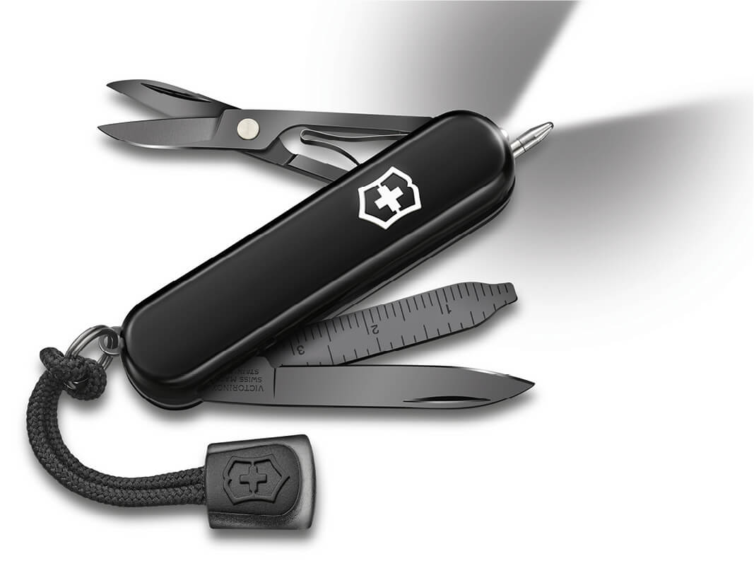 Besonders praktisch: Das Signature Lite Onyx Black ist mit einem integrierten LED-Licht ausgestattet, sodass du auch bei schlechten Lichtverhältnissen bestens gerüstet bist. Zusätzlich verfügt es über einen ausziehbaren Kugelschreiber, der dir jederzeit für schnelle Notizen zur Verfügung steht. Neben diesen innovativen Features bietet das Taschenmesser auch klassische Werkzeuge wie eine Klinge, eine Schere und eine Nagelfeile.