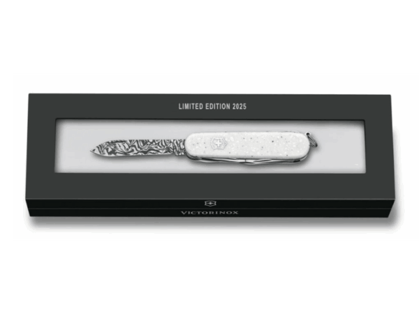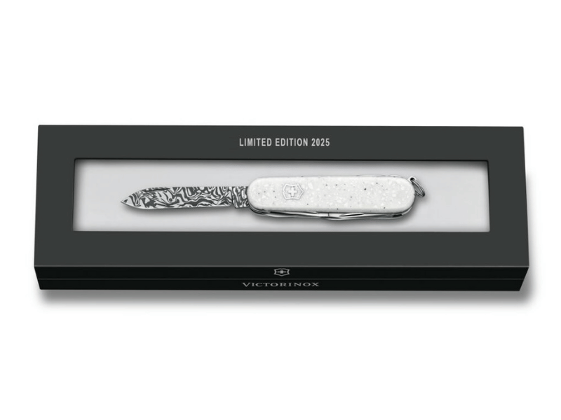 Mit dem Special Companion Damast Limited Edition 2025 entscheidest du dich nicht nur für ein funktionales Taschenmesser, sondern für ein außergewöhnliches Sammlerstück, das Stilbewusstsein und höchste Schweizer Handwerkskunst vereint. Die Griffschalen aus hochwertigem Corian® präsentieren sich in edlem Mattweiß – inspiriert von der natürlichen Ästhetik von Stein, angenehm kühl in der Hand und dank der kratzfesten Oberfläche ideal für den täglichen Einsatz. Robust und formvollendet begleitet dich dieses Messer zuverlässig – im Alltag, auf Reisen oder bei besonderen Anlässen.