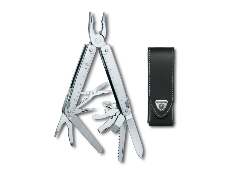 Design trifft auf Funktionalität: Das Swiss Tool X besticht nicht nur durch seine unglaubliche Vielseitigkeit, sondern auch durch sein elegantes und durchdachtes Design. Mit dem mitgelieferten Leder Etui hast du dein Multi-Tool immer sicher und stilvoll verstaut. Das edle Etui schützt das Werkzeug und sorgt gleichzeitig dafür, dass du es überallhin bequem und gut organisiert mitnehmen kannst.